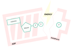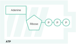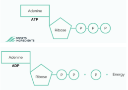 Our body uses the molecule ‘ATP’ to generate energy. ATP stands for Adenosine Triphosphate and is often referred to as the energy currency of the cell. So think of ATP as a battery.ATP exists of a base molecule with three phosphate groups bound to it. When the body needs energy, it will divide the battery ‘ATP’ into another molecule named ‘ADP’ and a loose phosphate group (P) which releases energy.