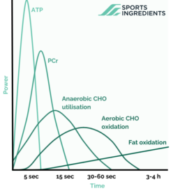 During physical movement, that lasts up to 15 seconds, creatine can be used to produce energy. For exercise durations longer than 15 seconds, other energy systems come into place like shown in the illustration.
